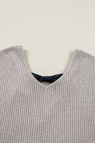 This elegant top features a charming ribbon bow back detail. The shoulder design adds a relaxed yet stylish silhouette, while the soft stretch fabric ensures comfort and a flattering slim fit. Perfect for date nights, office, or casual wear. Polyester/Spandex