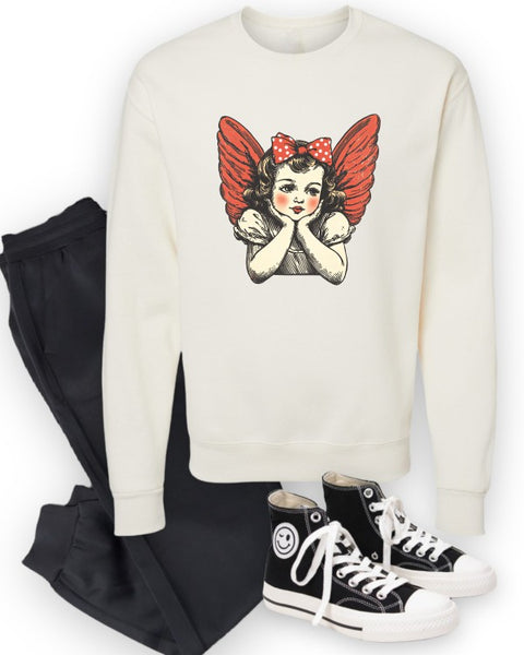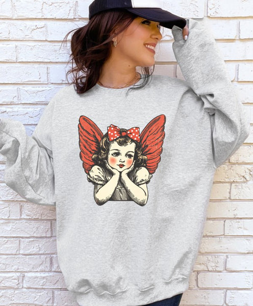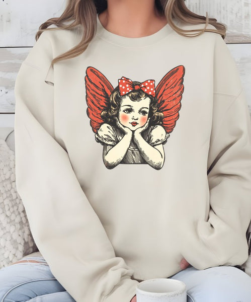 Retro Angel Valentine Graphic CrewNeck SweatshirtGildan Brand, 50/50 Poly Cotton BlendSuper Soft LiningSize up for Oversized Look#plus size #oversized #crewneck Sweater#pink valentine#open pack #valentine#quick shipping