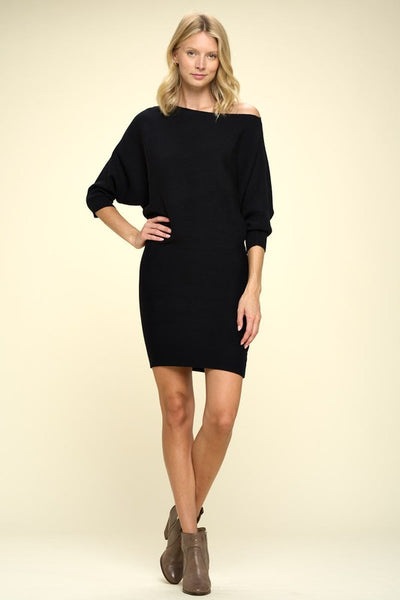 Made in USA Ribbed Sweater Knit Dolman Sleeve Dress. Fabric content: 50% Viscose, 30% Polyester, 20% Nylon.