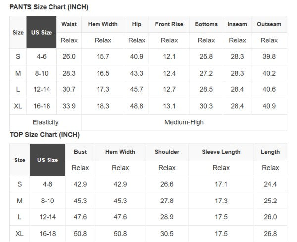 See size chart for approximate measurements.