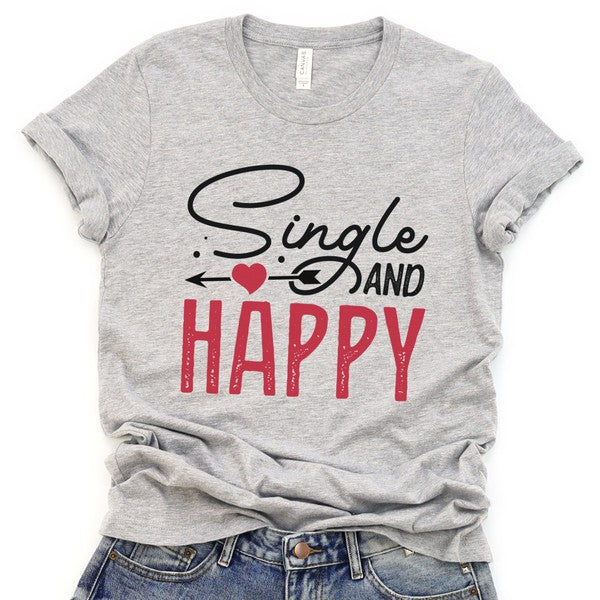 Valentine's Day Single and Happy Women's crewneck t-shirt. T-shirts are lightweight, comfy, and feature a relaxed, unisex fit.