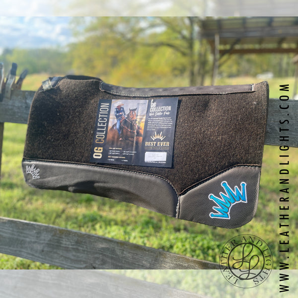 Brown 1 inch wool with smooth brown side, Blue Crown embroidery & wither cut out.