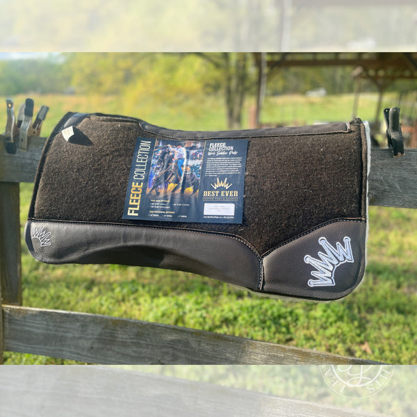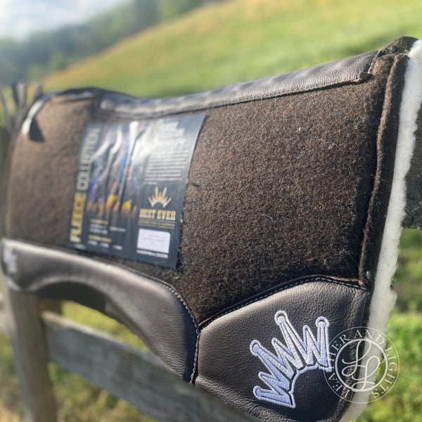 The Fleece Saddle Pad is part of our CEO Collection that was specially engineered in 2010 to aid in horse comfort for high performance events as a non-slip saddle pad. Perfect for giving a little extra support for performance horses, the Fleece Series adds a fleece lining to create an especially soft feel for added comfort, shock absorption, and great moisture wicking ability to keep your horse cool. This fleece lined saddle pad is a great pad for horses where their current pad is rubbing or if they have thin or sensitive skin. This fully customizable fleece saddle pad is available in dark grey with two different thickness options: 3/4” and 1” thickness.