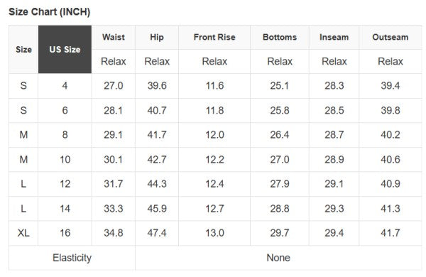 See size chart for approximate measurements