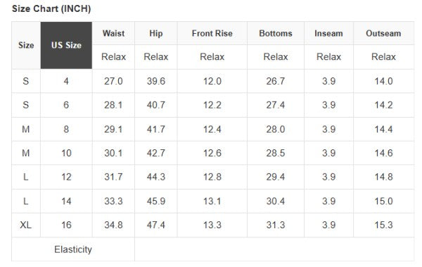 14: (Waist), (Hips), (Inseam), (Length)
