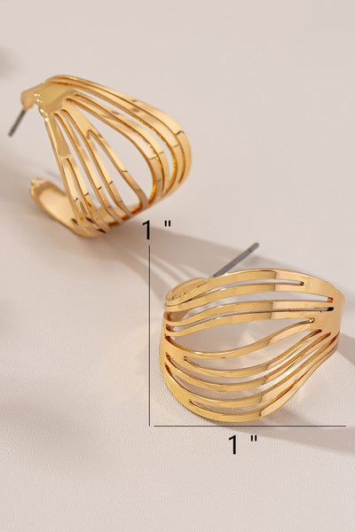 Make a statement with these stunning gold openwork hoop earrings. Featuring an intricate cut-out design, these hoops offer a modern and sophisticated touch to any outfit. Lightweight yet eye-catching, they're perfect for elevating your everyday or evening look.