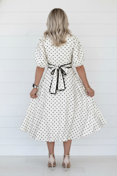 Polka dots never go out of style, and this charming midi dress proves why. Featuring a crisp button-down front, delicate scalloped trim accents, and a self-tie waist that flatters every figure, it's the perfect piece for mixing sophistication with fun. Short sleeves keep things breezy, while the versatile silhouette takes you seamlessly from weekend brunch to dinner dates. Dress it up or down, this timeless classic is ready for whatever your day brings. 100% Polyester