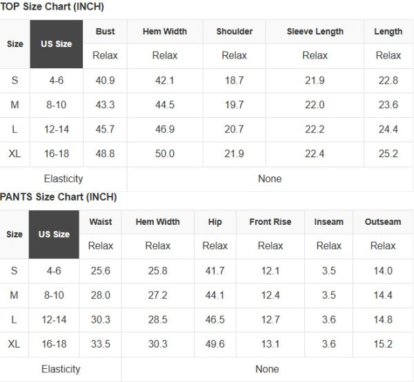 See size chart for approximate measurements