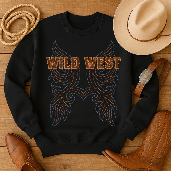 Channel vintage Western vibes with our Wild West sweatshirt, featuring a bold cowboy-inspired graphic with rustic stitching detail. Made from an 80/20 ring-spun cotton/polyester blend, this cozy piece is designed for softness, durability, and everyday wear.